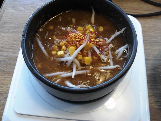 『つけめんのスープの方をクッキングヒーターで暖めながら食べて下さい』