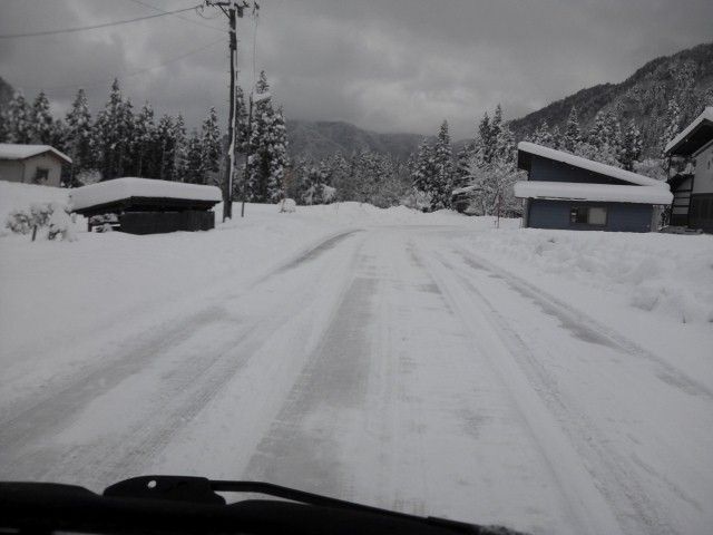 上宝町本郷方面の道路も、しっかり圧雪状態です。
