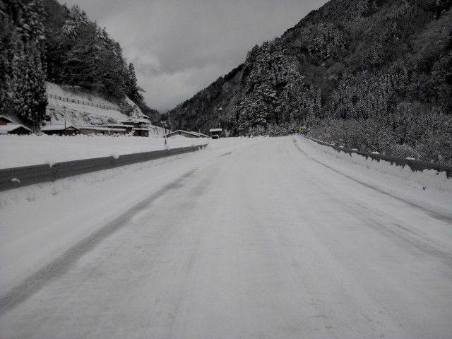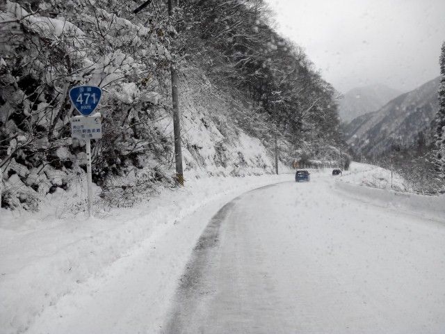 R471 上宝町長倉地内も、やっぱり圧雪道路。