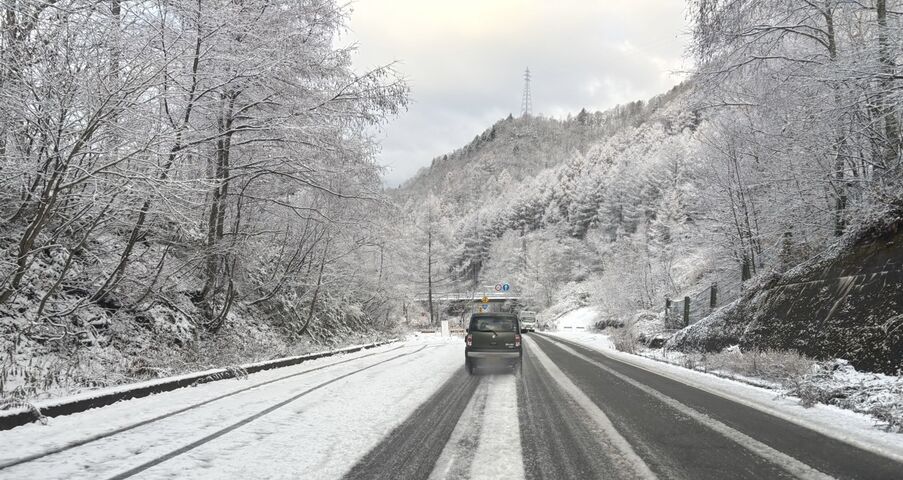 ノーマルタイヤでの走行は危険です