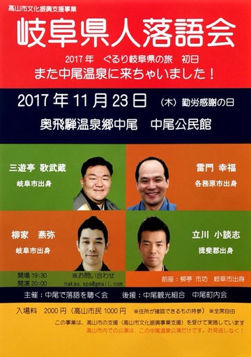 今回は、岐阜県出身の落語家さん達が揃ってます。